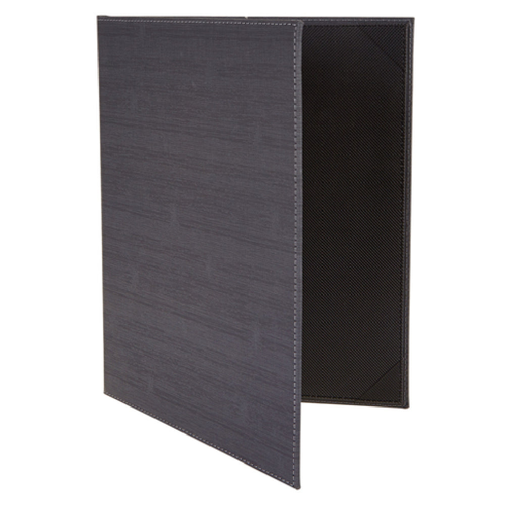 The Winco LMD-811GY menu cover is constructed from high-quality leather-like material, with dimensions of 8-1/2" x 11". It features a double fold style designed for frequent handling in moderate-volume foodservice settings. The product is available with interior picture corners or top and bottom magnets, facilitating quick menu changes while maintaining presentation integrity. Its overall weight and construction prioritize durability, with a focus on easy cleaning and long-term use. It operates independently without electrical requirements and is designed to withstand typical kitchen temperatures. The color finish is a neutral gray, suitable for various establishment aesthetics. With a standard manufacturing finish, it supports daily sanitation routines and comes with a slip-resistant surface for safety during handling.