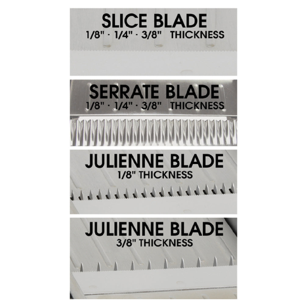 • Blade Adjustment: 4-position rotary dial for precise thickness control
