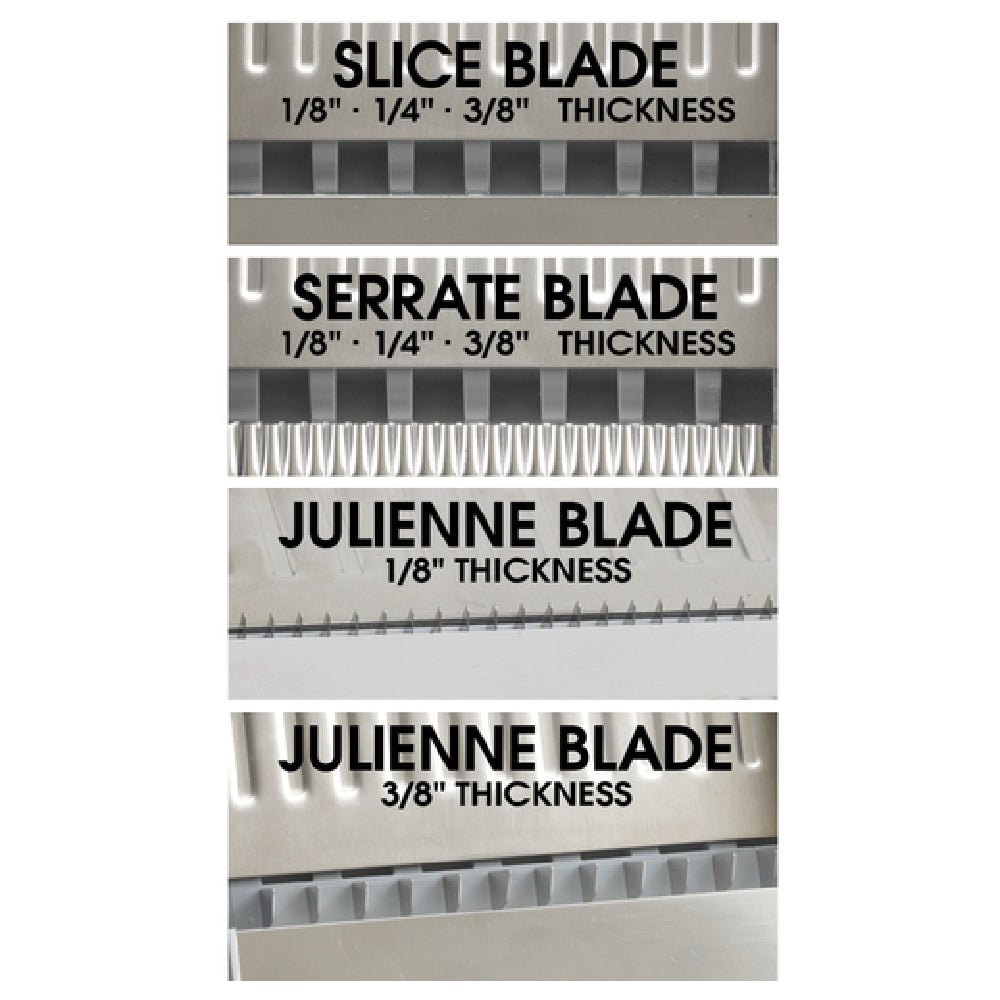 Ideal for culinary prep, salad bars, or buffets requiring quick, uniform julienne and slice production.