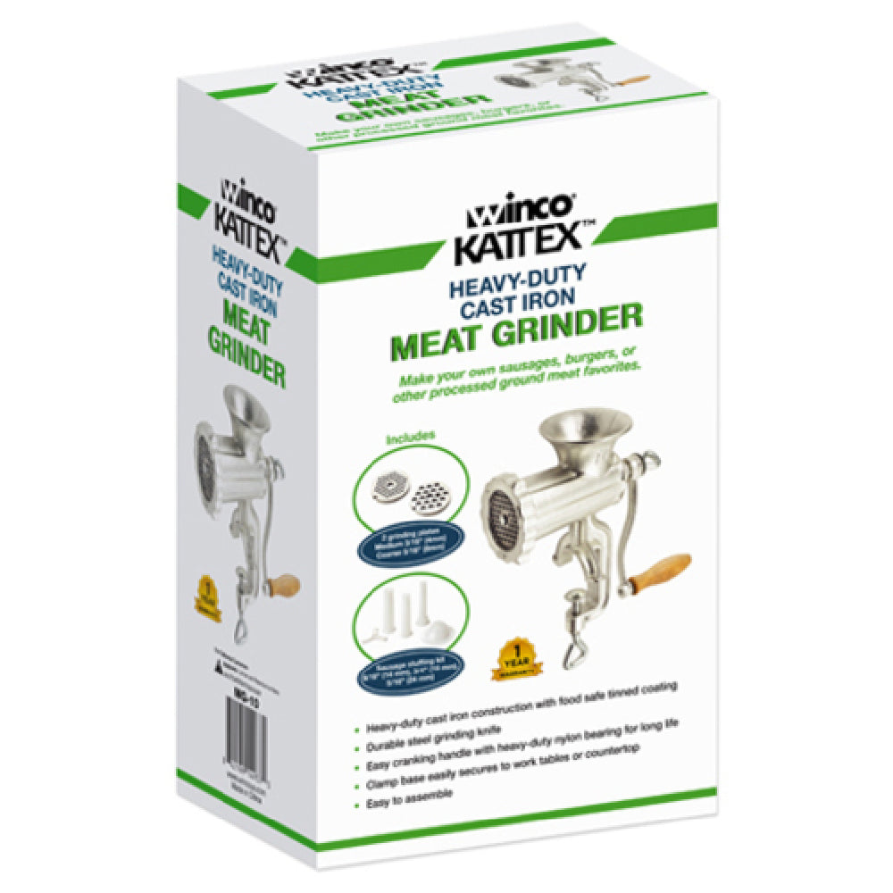 Winco MG-10 10 Inch Manual Meat Grinder with Cast Iron and Tinned Coating