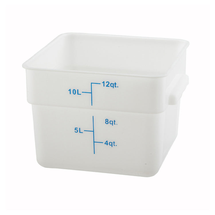 Winco PESC-12 12 Qt Food Storage Container Square Built-in Handles Polypropylene White