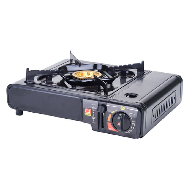 Winco, PGS-1K, Butane Stove, portable, adjustable heat range, uses standard 8 oz. butane canister, automatic gas shut-off, brass burner, for commercial & outdoor use, includes impact resistant hard plastic carrying case, black, 9,500 BTU (butane sold separately, not sold by Winco), cCSAus, CSA Flame, CSA Star