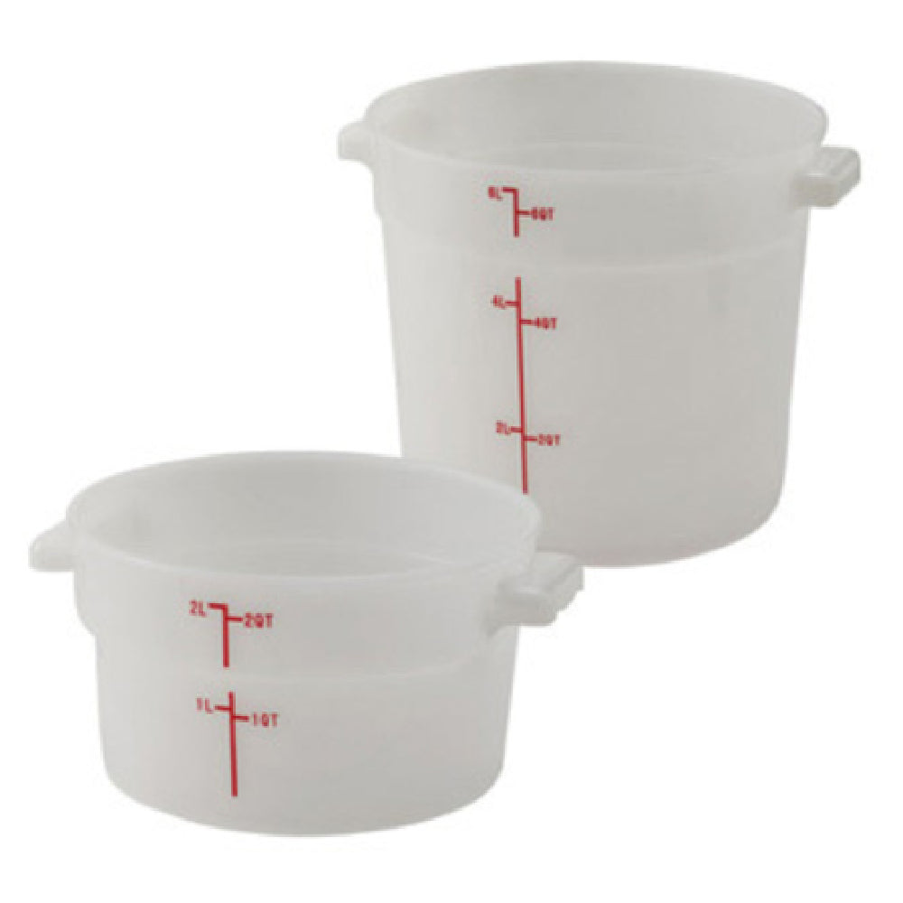 The Winco PPRC-8W Food Storage Container is a robust commercial-grade polypropylene vessel designed for precise food preservation and ingredient organization in professional kitchens. This 8-quart round container measures 8.88" x 10.38" x 10.75"H, featuring high durability, stain resistance, and temperature tolerance from -40°F to 160°F. Its BPA-free construction and dishwasher-safe design facilitate ease of cleaning and sanitation, making it suitable for high-volume foodservice environments. The built-in handles enhance maneuverability, and graduated markings in quarts and liters enable accurate portion control. Engineered for commercial storage and preparation workflows, this container provides a reliable solution for ingredient segregation, cold storage, and prep station management.