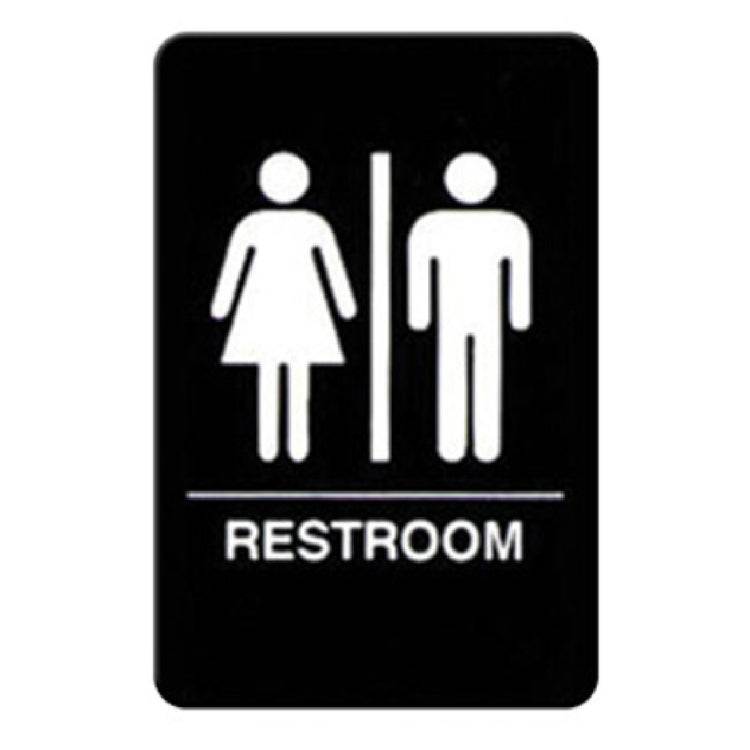 Winco, SGNB-603, Sign, with symbol, 6" x 9"H, braille, "RESTROOM", white imprint on black