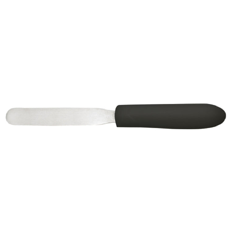 The Winco TKPS-4 bakery spatula is constructed with a durable stainless steel blade measuring 2 to 6 inches in length, featuring an NSF-listed design suitable for commercial environments. The black polypropylene handle is ergonomically designed for slip resistance, providing safety and comfort during extended use. Weighing only 0.11 pounds, this spatula is built for lightweight handling without sacrificing strength. It operates within standard kitchen temperature ranges and can withstand frequent dishwasher cleaning, ensuring hygiene compliance and longevity. Its compact dimensions make it easy to store and integrate into routine bakery workflows, while its corrosion-resistant surface supports daily sanitation practices. The spatula's design is optimized for use in bakery and pastry applications, supporting precise spreading, lifting, and flipping tasks in foodservice operations.