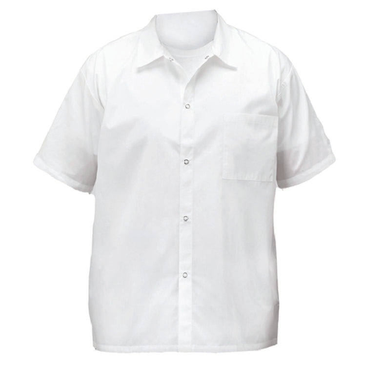 Winco UNF-1WXL Cook's Shirt XL Short Sleeved White Poly-Cotton Blend Snap Buttons