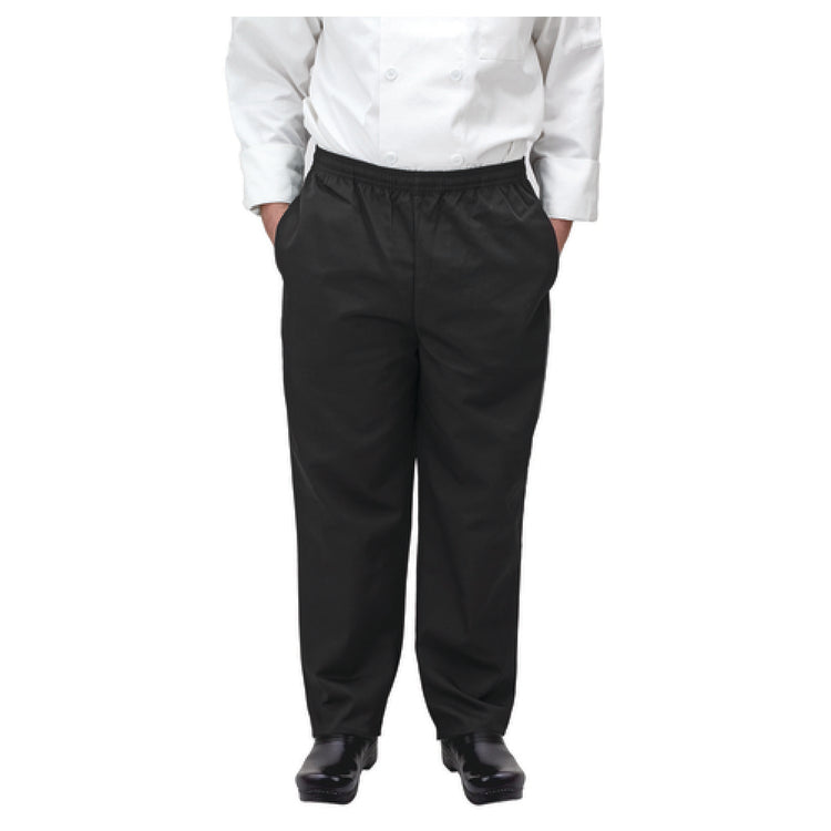Winco UNF-2KXL XLarge Newbury Chef Pants Relaxed Fit Elastic Waistband Black