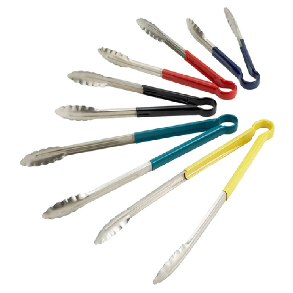 Winco UT-12HP-R 12 Inch Heavy Duty Plastic Handle Tongs Red Stainless Steel