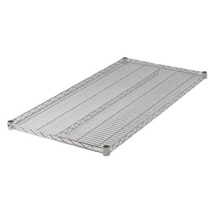 The Winco VC-2136 Shelf is a commercial-grade wire shelving unit designed for optimal storage in foodservice environments. Measuring 36 inches in width by 21 inches in depth, this chrome-plated wire shelf provides a sturdy and corrosion-resistant platform ideal for kitchen, pantry, or prep area use. Its technical construction features robust wire mesh support with included sleeve clips for secure installation, making it suitable for medium-volume foodservice operations requiring reliable storage with easy maintenance.
