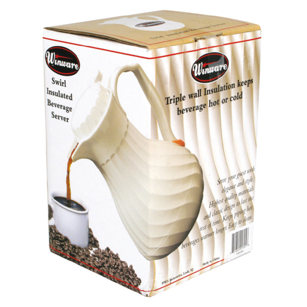 Winco, VSW-64W, Beverage Server, push button, 64 oz., double wall insulated, includes: tags for regular, decaf and tea, swirl design, plastic, white, NSF (hand wash only)