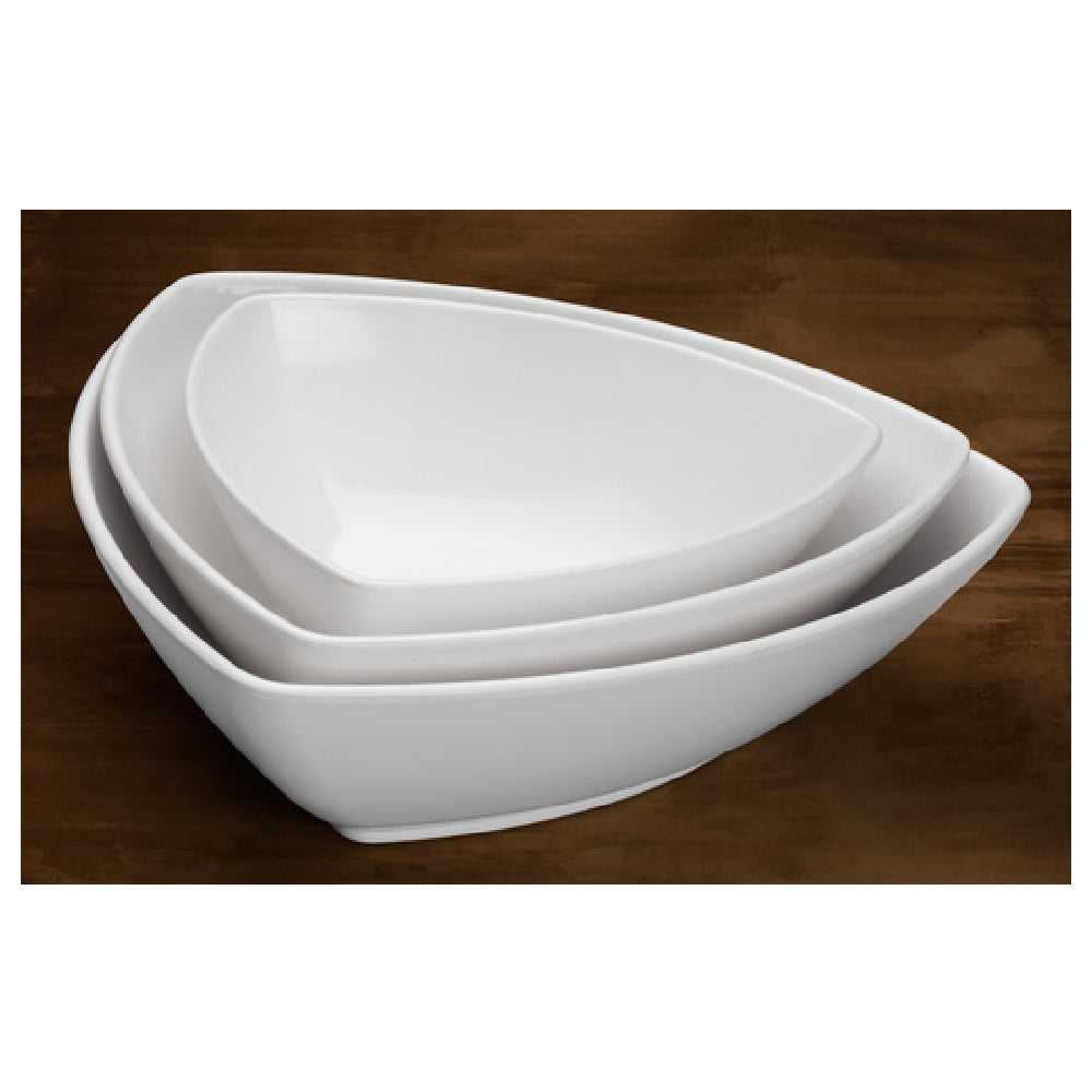 Designed for medium-throughput kitchens, the Winco WDM005-204 bowl features premium impact-resistant melamine, ensuring durability during frequent handling. This dishwasher-safe, 10-inch triangular bowl is perfect for catering, buffets, or restaurant prep, providing reliable performance and stable stacking in commercial foodservice environments. Winco WDM005-204 bowls excel in efficiency and sanitation for high-traffic settings.