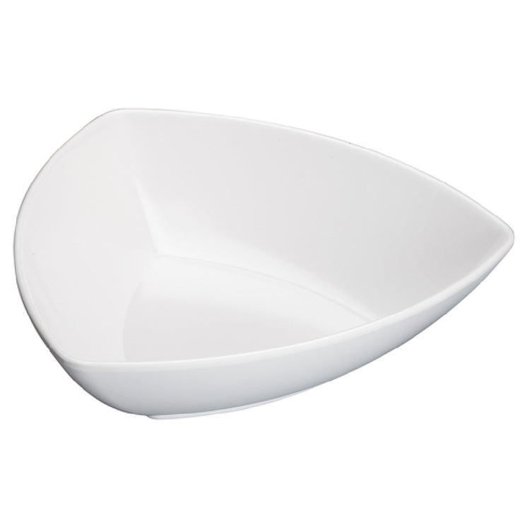 The Winco WDM005-204 bowl features a 10-inch diameter with a 51-1/4 oz. capacity, optimized for medium-volume foodservice tasks. Constructed from high-quality melamine, it offers enhanced impact resistance and dishwasher compatibility. The bowl weighs approximately 32.12 lbs per case, with dimensions suited for efficient storage and handling. Its white finish complements various kitchen aesthetics, while the triangular shape ensures stable placement during operation. This model is designed for heavy-use environments, providing a resilient solution for serving salads, ingredients, or side dishes in commercial kitchens. Its material properties support consistent cleaning and sanitation, supporting hygiene standards necessary for food safety compliance.