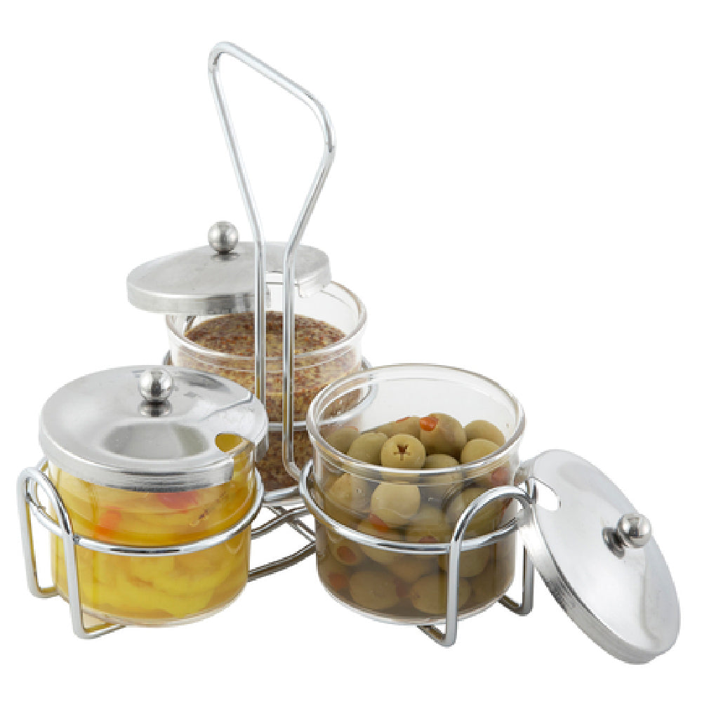 Winco WH-4 Condiment Jar Holder Chrome Plated Metal 3 Ring Design