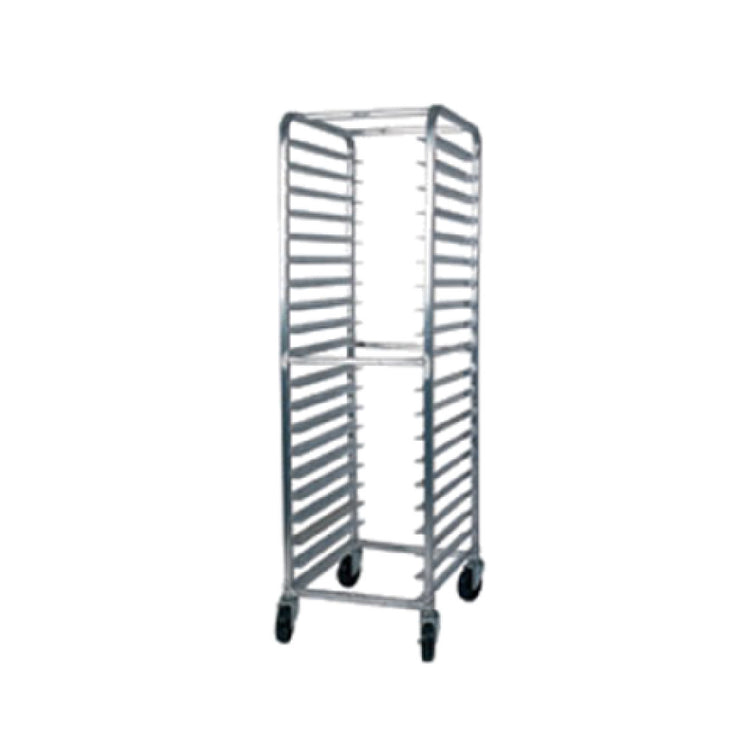 This pan rack offers a welded aluminum frame with open sides, ensuring strength, corrosion resistance, and ease of cleaning. Equipped with slides for standard sheet pans, it supports heavy loads with a capacity for 14"x18" or (18) 18"x26" pans. Its mobility is enabled by 5" casters, including locking options for stability during operation. The open top and end-loading design streamline workflow, reducing loading and unloading times for busy kitchens. Designed for medium-volume foodservice settings, this rack optimizes space utilization and provides reliable support for sheet pans, enhancing overall productivity.