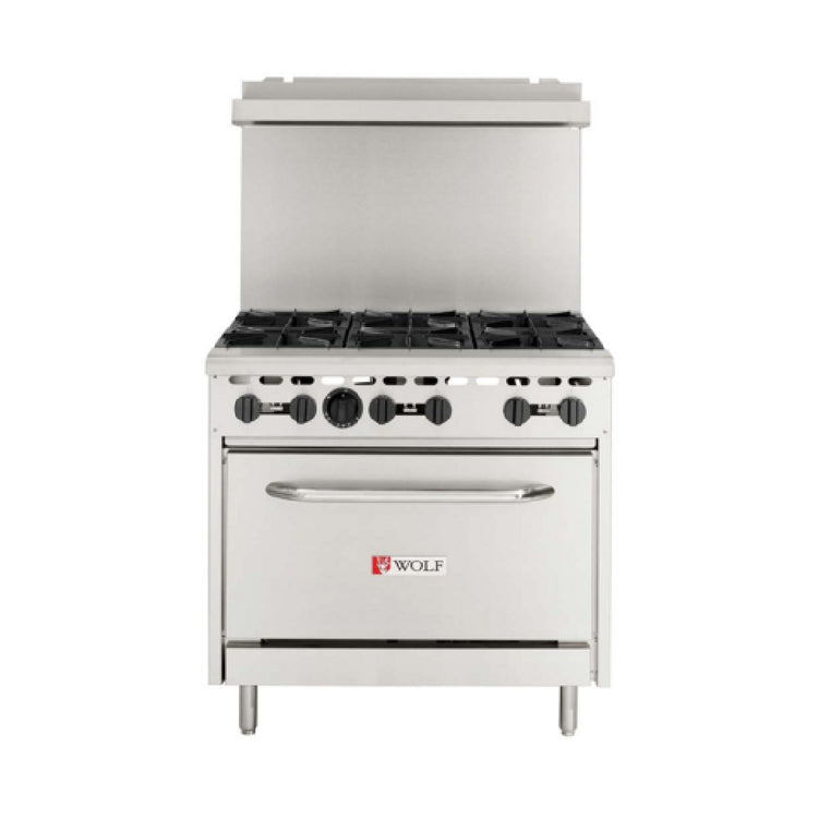 A commercial gas restaurant range is a professional-grade cooking appliance equipped with multiple burners and an oven, built to withstand high daily usage in foodservice operations. The Wolf WX36-6BN-QS-COMMANDER includes six 28,000 BTU burners and a standard oven, fabricated with stainless steel for durability and sanitation. Installed in small restaurant kitchens or institutional settings, it provides steady, precise heat for a range of menu items. Certified by ETL-Sanitation, it complies with safety and sanitation standards, supporting consistent food prep in foodservice environments with moderate demand and space considerations. Its robust build and ease of maintenance make it suitable for steady daily workflows and demanding culinary tasks.