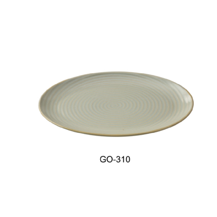 The Yanco GO-310 Golden Coast Dinner Plate is a high-quality porcelain dish designed for commercial foodservice environments requiring durable, stylish dinnerware. Featuring a 6-1/4" width, 10" length, and a curved edge rim, it combines functional size with aesthetic appeal. Its earthy tone with a golden rim fits well in upscale casual or hospitality settings, supporting efficient service with microwave and dishwasher compatibility for streamlined operations.