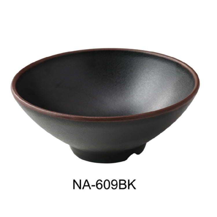 Yanco NA-609BK 55 Oz Round Ramen Bowl Melamine Black with Brown Accent - 2 Dozen/Case