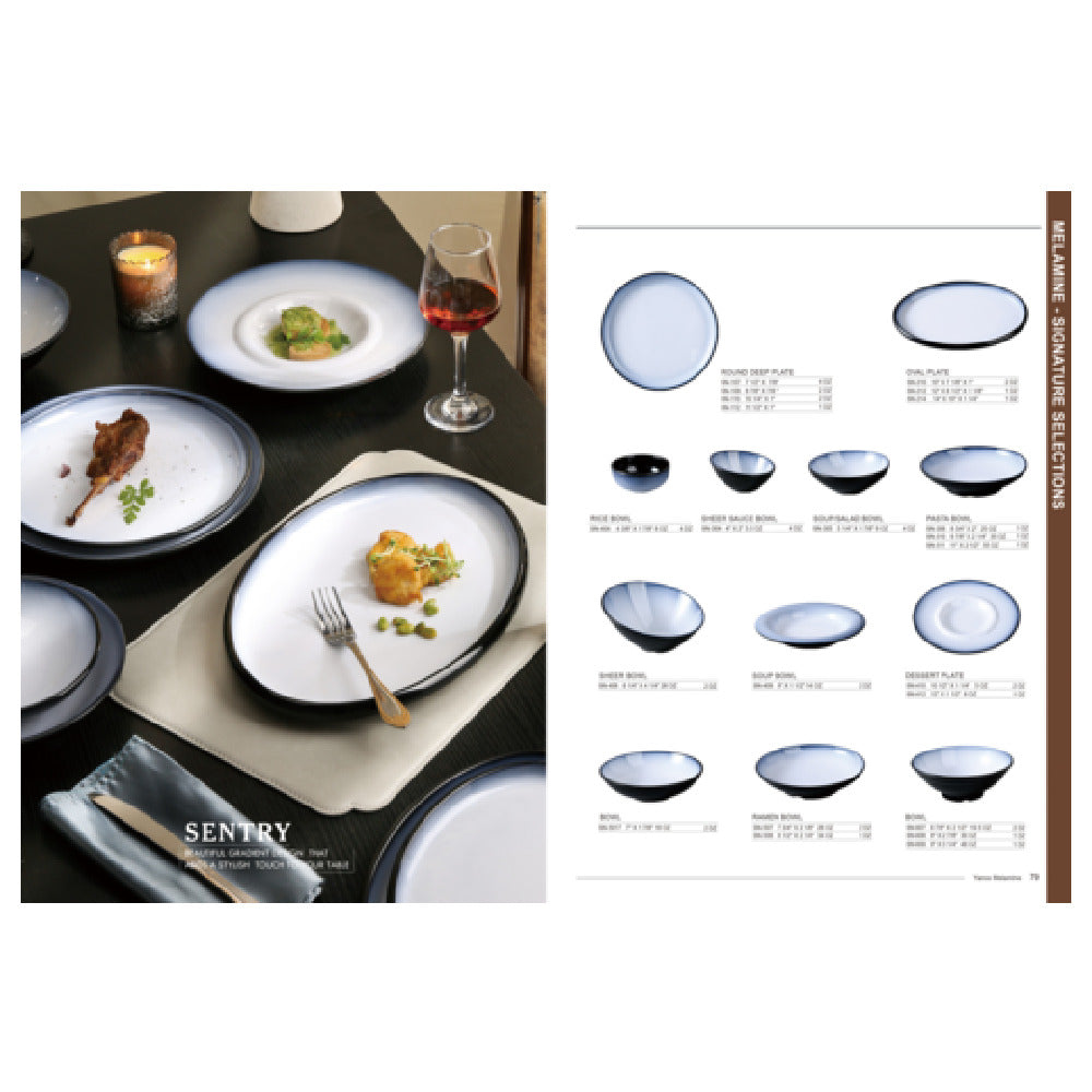 The Yanco SN-609 Sentry Bowl is a commercial-grade plastic bowl designed for foodservice environments requiring durable and reliable tableware. Crafted from break-resistant melamine, this 48-ounce round bowl measures 9 inches in diameter and stands 3 1/4 inches tall, making it suitable for medium-volume restaurant, cafeteria, or catering applications. Its dishwasher-safe design and robust construction support frequent cleaning cycles and long-term use, ensuring sanitation and efficiency in busy kitchens. The dual-color finish in white and black enhances presentation and simplifies meal portioning, aligning with HACCP protocols and industry standards for quality foodservice equipment.