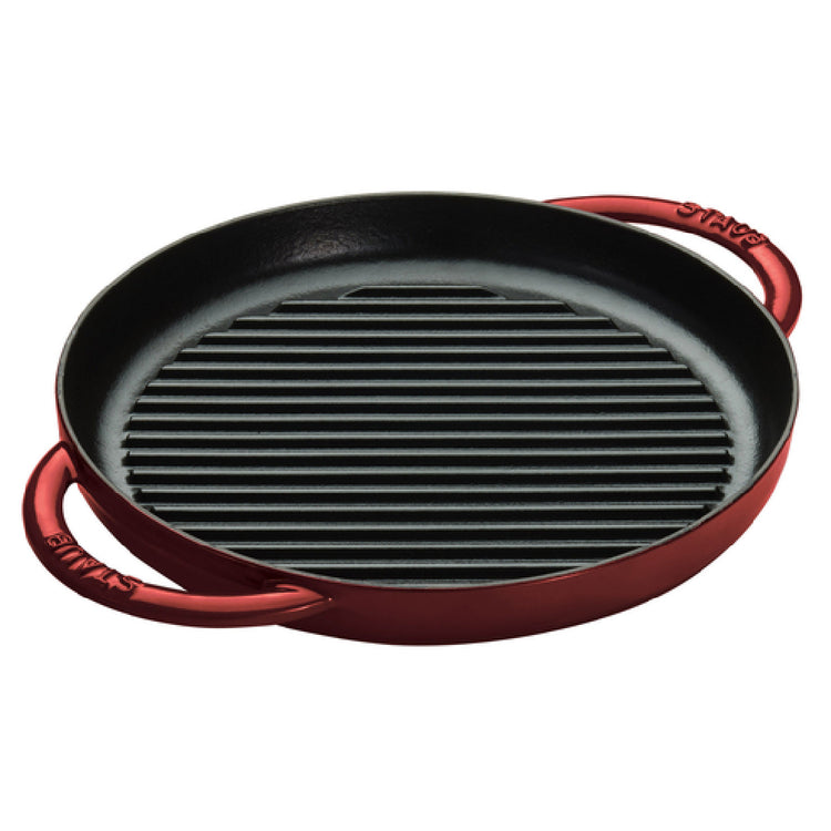 The Zwilling 12012687 Staub® Pure Grill is a commercial-grade cast iron grill pan designed for professional kitchens and foodservice operations. Measuring 10 inches in diameter with overall dimensions of 13.5" x 10.5" x 1.5" and equipped with handles, this round griddle is optimized for even heat distribution and durability. Its enameled surface allows for versatile use in high-temperature environments, including oven safety up to 572°F, and compatibility with induction cooktops, making it suitable for restaurant, catering, and institutional settings focused on reliable food prep and presentation. This model is especially valued for its robust construction and heat retention capacity, suited for medium-volume daily use in commercial kitchens.